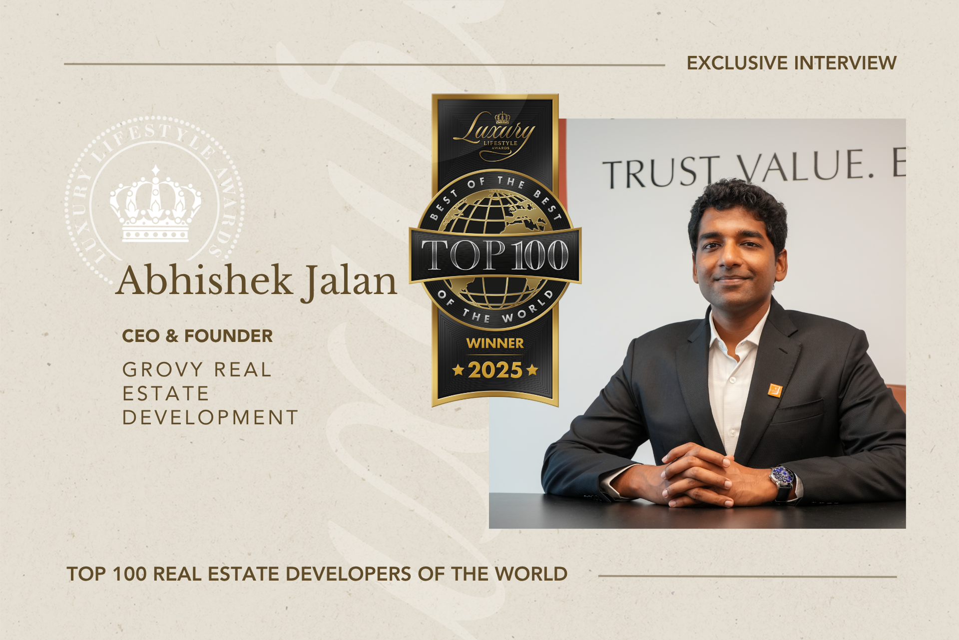 In this exclusive interview led by Alexander Chetchikov, President of the World Luxury Chamber of Commerce, Abhishek Jalan, CEO and Founder of Grovy Developers, recently recognized among the TOP 100 Real Estate Developers of the World by the Luxury Lifestyle Awards, shares insights on the company’s philosophy, innovations, and approach to luxury real estate.