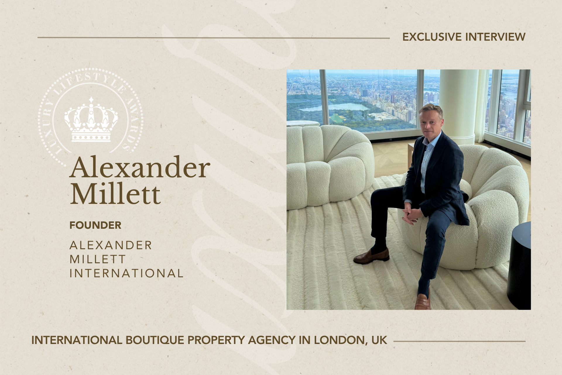 Alexander Millett, Founder of Alexander Millett International, leads a boutique real estate agency recognized by Luxury Lifestyle Awards as Best Luxury International Boutique Property Agency in London, UK, 2026. Established in 2016, the firm reflects a highly personalized and discreet approach to prime real estate advisory, operating across key global markets. In conversation with Alexander Chetchikov, President of the World Luxury Chamber of Commerce, Millett discusses the principles shaping his firm’s growth, client relationships, and long-term positioning within the international property sector.