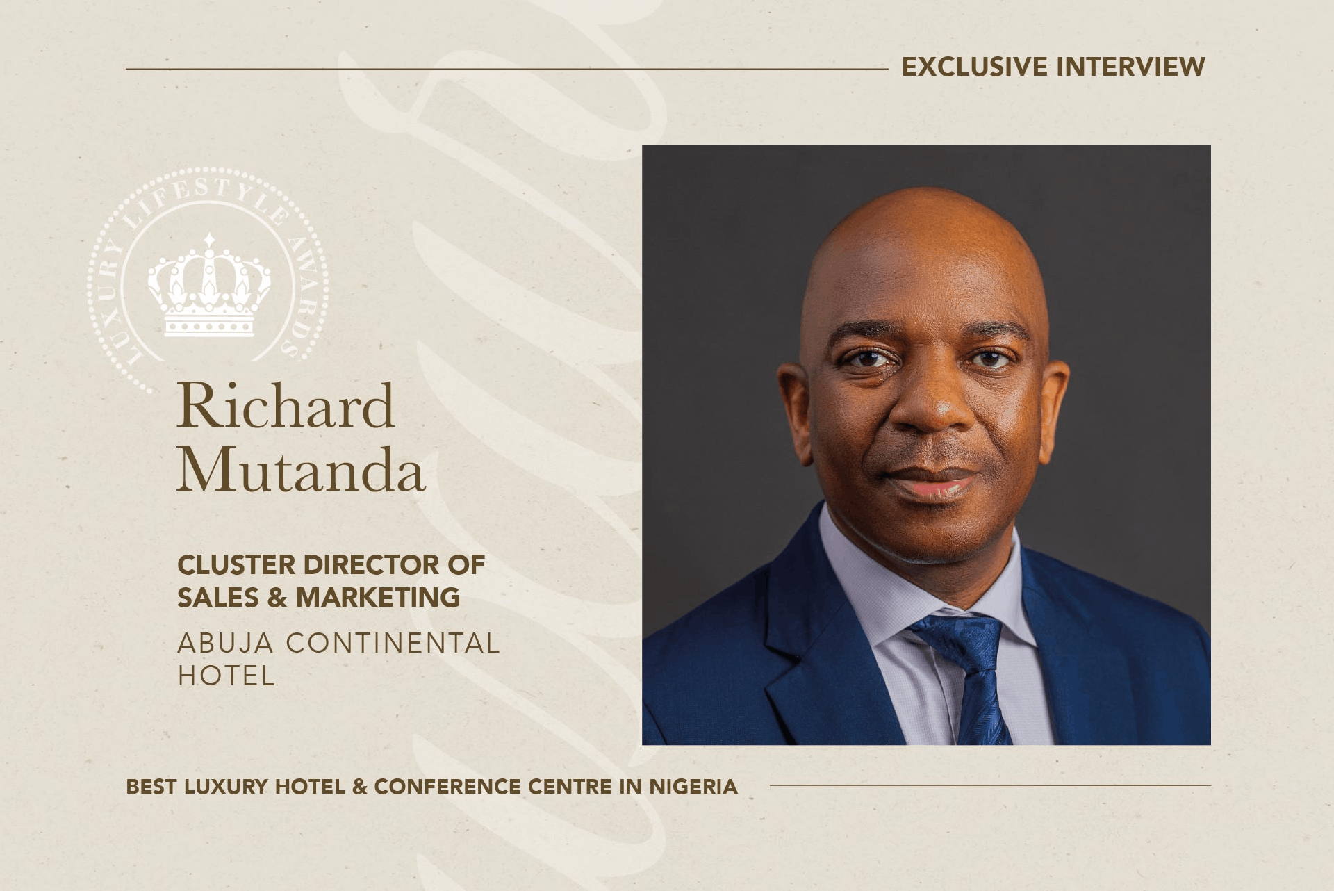 Richard Mutanda: Thank you, Alexander. This award is a profound validation of the vision, dedication, and relentless pursuit of excellence that have defined Abuja Continental Hotel since its inception. For a property that opened its doors relatively recently, being named Best Luxury Hotel & Conference Centre in Nigeria by the prestigious Luxury Lifestyle Awards represents far more than recognition — it affirms that we have successfully carved a distinct niche in a competitive market by blending timeless African hospitality with uncompromising international standards. It boosts team morale, strengthens stakeholder confidence, and signals to discerning travellers worldwide that Abuja now hosts a true luxury benchmark. Most importantly, it reinforces our commitment to continuous improvement as we strive to exceed guest expectations at every touchpoint.
