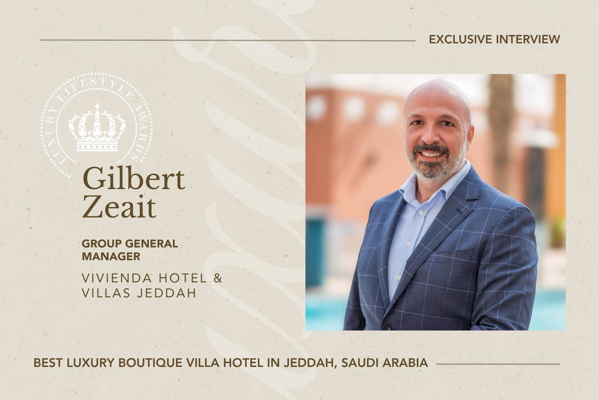 Gilbert Zeait, Group General Manager of Vivienda Hotel & Villas Jeddah, leads a property recognized as Best Luxury Boutique Villa Hotel in Jeddah, Saudi Arabia (2026). The hotel reflects a refined approach to privacy, personalized service, and culturally grounded hospitality. In conversation with Alexander Chetchikov, President of the World Luxury Chamber of Commerce, the discussion explores leadership perspectives on boutique luxury, operational consistency, and evolving guest expectations in the region.