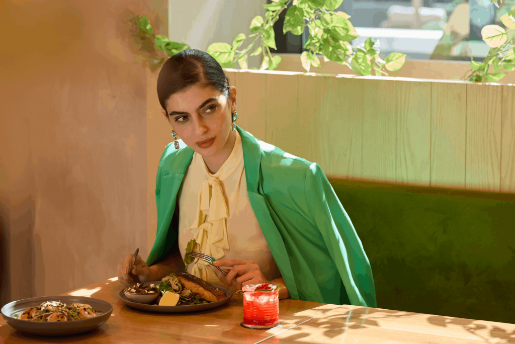 The location itself supports the upscale ambition: Fairmont Ramla is a premium serviced residences and hotel project, designed by Tokyo-based Nikken Sekkei, and Jones the Grocer claims pride of place on the ground floor retail area. The atmosphere is one of relaxed sophistication, stylish furnishings, communal and outdoor seating, and an approachable ambiance that still speaks to luxury.