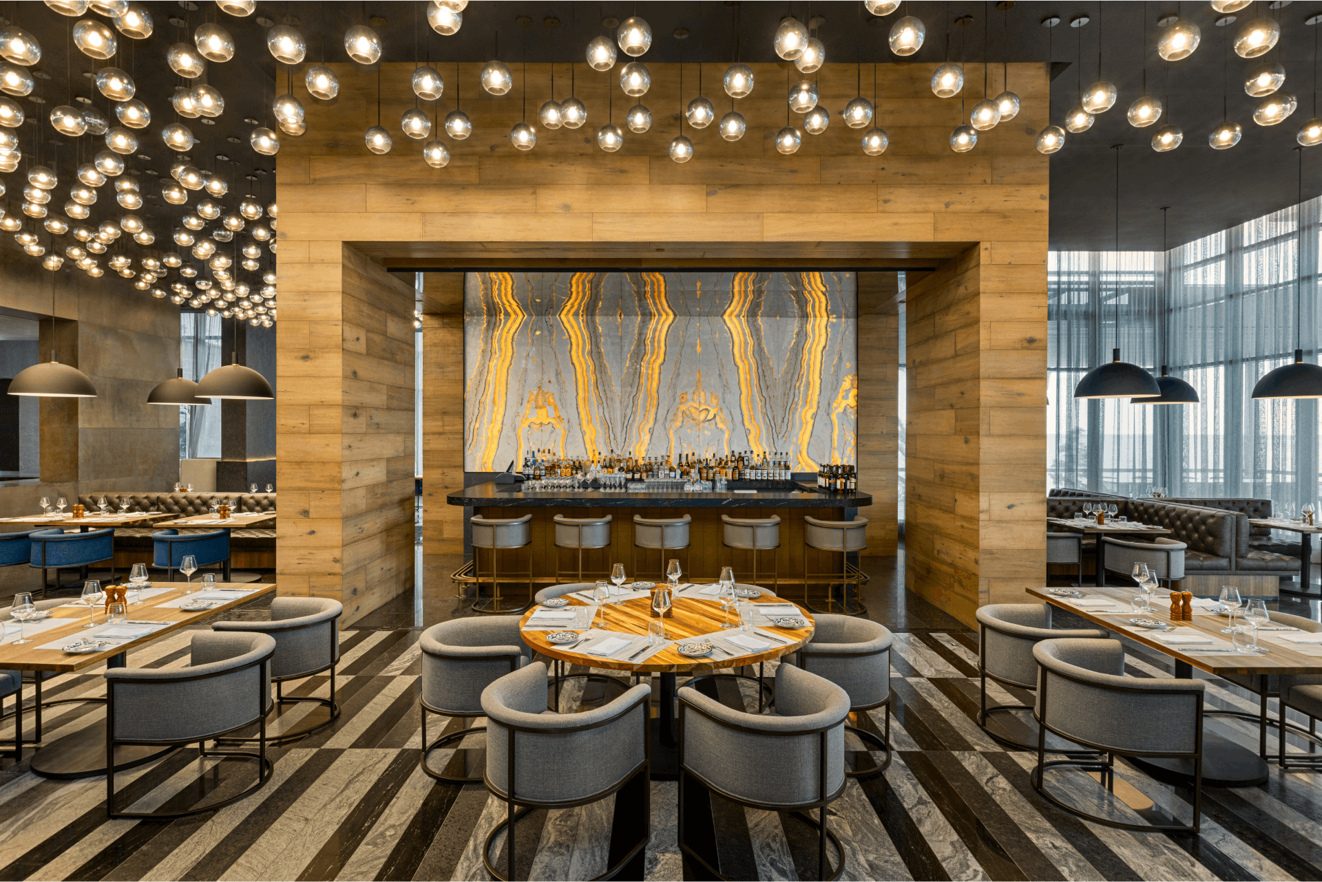 La Luce is designed to impress from the moment guests step inside. The restaurant’s interior reflects a modern, sleek aesthetic, striking a balance between sophistication and a warm, convivial atmosphere. At its center is the wood-fired pizza oven, which not only anchors the space visually but also fills it with inviting aromas that immediately transport diners to the heart of Italy. Elegant lighting fixtures, contemporary furniture, and clean architectural lines contribute to an ambiance that feels polished yet approachable. Whether it’s couples seeking a romantic evening, families enjoying quality time together, or groups of friends gathering for a lively night, the atmosphere provides just the right balance of refinement and ease.