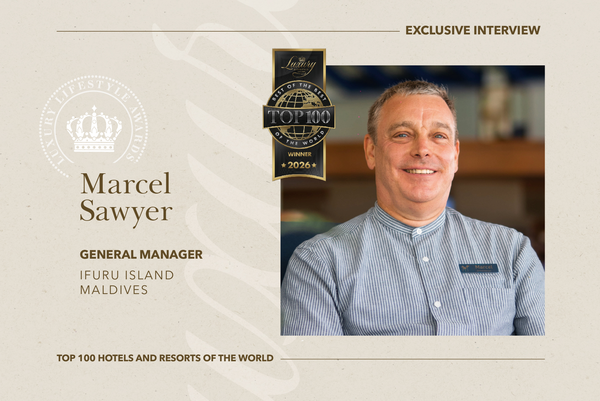 Marcel Sawyer, General Manager of Ifuru Island Maldives, leads one of the Maldives’ most distinctive contemporary island resorts, recognized as part of the Luxury Lifestyle Awards TOP 100 Hotels and Resorts of the World for 2025. In conversation with Alexander Chetchikov, President of the World Luxury Chamber of Commerce, Sawyer reflects on leadership, personalization, and the evolving expectations of modern luxury travelers.