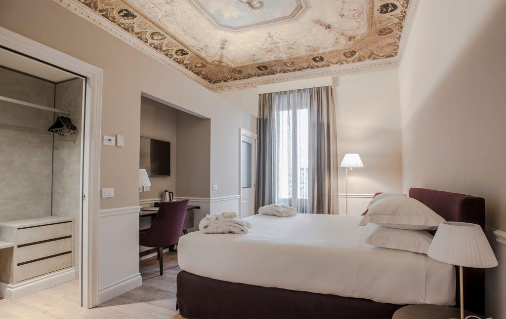 Sleeping beneath frescoed ceilings, along Renaissance staircases, and around hidden courtyards transforms a trip into a complete sensory experience, where every detail tells a story of centuries of art and beauty.