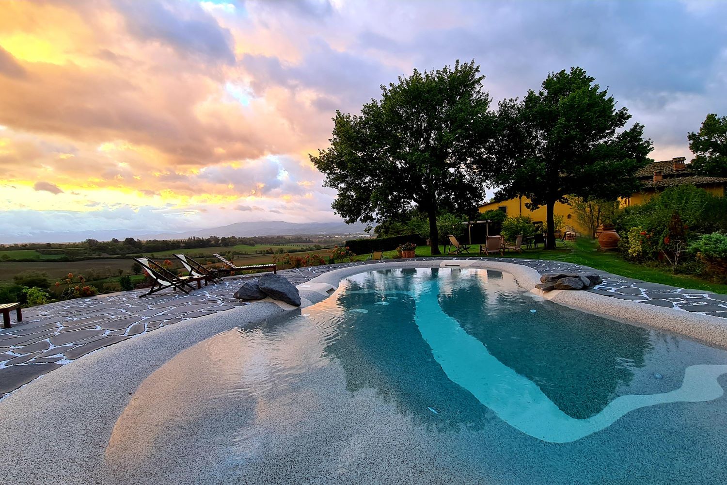 Fattoria I Ricci is one of those places where nature takes centre stage. A 17th-century villa and a wooden cottage, surrounded by vineyards and hills, allow guests to discover the deep connection between hospitality and agricultural tradition. One of the most charming features of the estate is its large park: 4,000 square meters of greenery with centuries-old trees, olive groves and vineyards. At its centre stands a panoramic stone swimming pool and an ancient olive mill that has been transformed into a spa, offering guests moments of pure well-being.