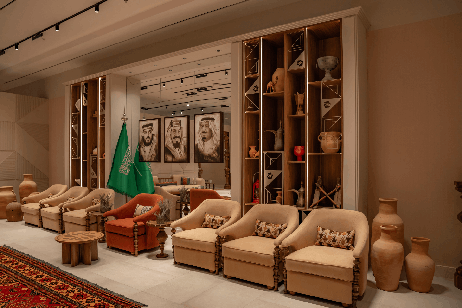 Founded by Engineer Noura Wahbi Suleiman, the Riyadh-based design firm has earned international acclaim for merging Saudi cultural heritage with contemporary design innovation. The award-winning District 7 Lounge showcases the firm’s ability to balance elegance, function, and identity, interpreting Salmani and Najdi architectural styles through a modern lens.