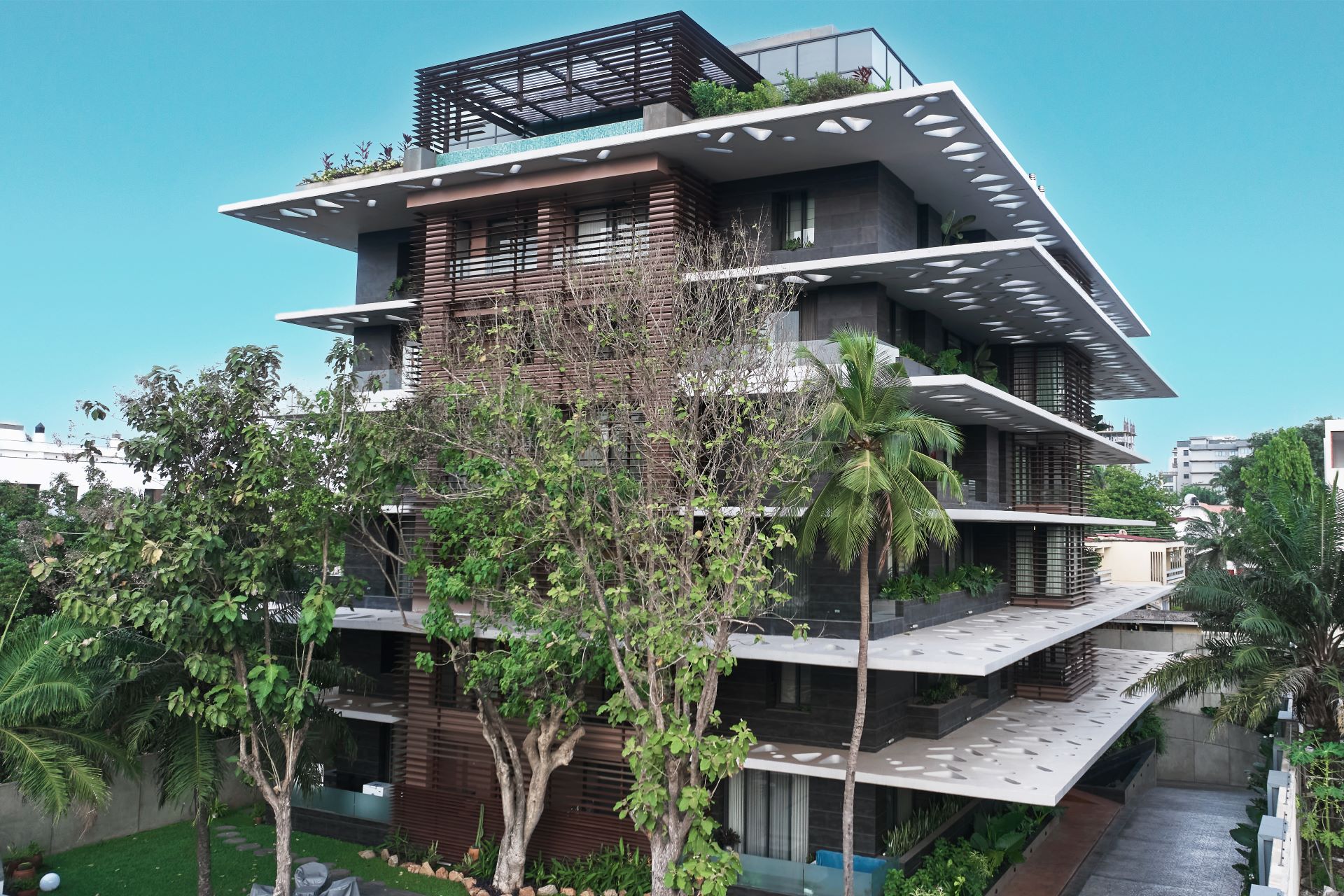Among its most celebrated works is the award-winning Beyond Residence, located in the prestigious Airport Residential Area in Greater Accra, Ghana. The project received the Luxury Lifestyle Award for Best Luxury Apartment Architecture in Ghana, recognizing its exceptional design and luxury residential concept. Beyond Residence is a distinctive residential apartment building designed to provide privacy, comfort, and a sense of home rather than a conventional apartment experience. The architecture integrates green elements, cantilevered perforated concrete slabs for natural shading and ventilation, and preserves a cluster of more than 50-year-old trees that form part of the project’s identity. The development includes duplex apartments, lofts, a penthouse with panoramic terraces and private pool, wellness amenities such as a gym and spa, and thoughtfully designed communal spaces including a cinema and landscaped outdoor pool area. Through projects like Beyond Residence, KEY Architectural Group demonstrates its philosophy of blending innovative luxury architecture with sustainability, cultural sensitivity, and timeless design excellence.