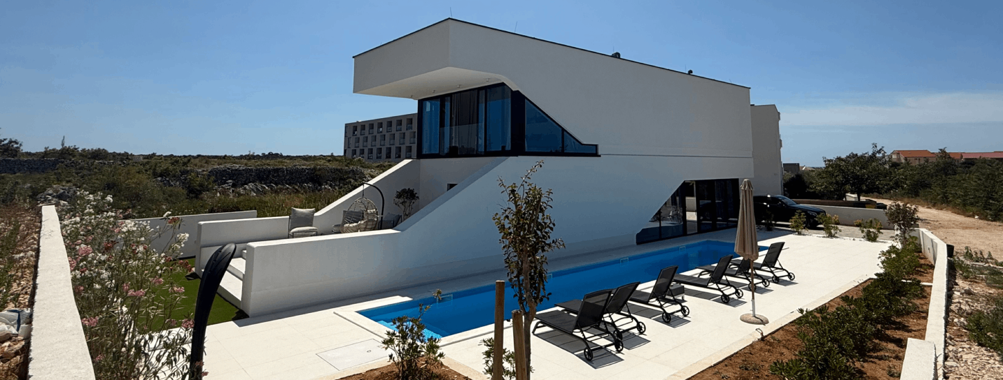 The studio gained international recognition when its project Mtvarysa, a sculptural residential villa on the Island of Pag, received the Luxury Lifestyle Awards for Best Contemporary Residential Architecture in Croatia, 2026. Designed as a contemporary rental residence in the city of Novalja, the villa demonstrates the studio’s ability to merge architectural form with natural surroundings. Sweeping curves, strategic orientation, and carefully framed views toward both the Adriatic Sea and the Velebit mountain range create a fluid dialogue between built space and landscape.