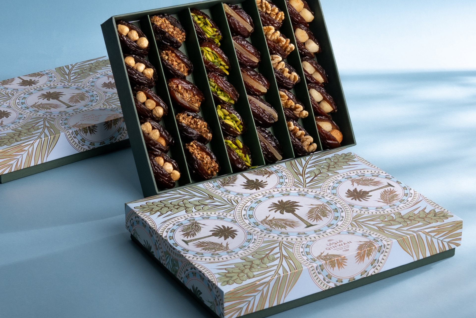 In London, Qinwan elevates luxury gifting through architectural presentation and highly personalized service. Mother of Pearl finishes, walnut-crafted boxes, and bespoke hampers reflect a philosophy built on five pillars – Quality, Craftsmanship, Exclusivity, Personalization, and Brand Experience. At Harrods, customers engage with dedicated date connoisseurs, curating selections that unite cultural heritage with contemporary refinement, positioning Qinwan as a benchmark within the global premium date category.