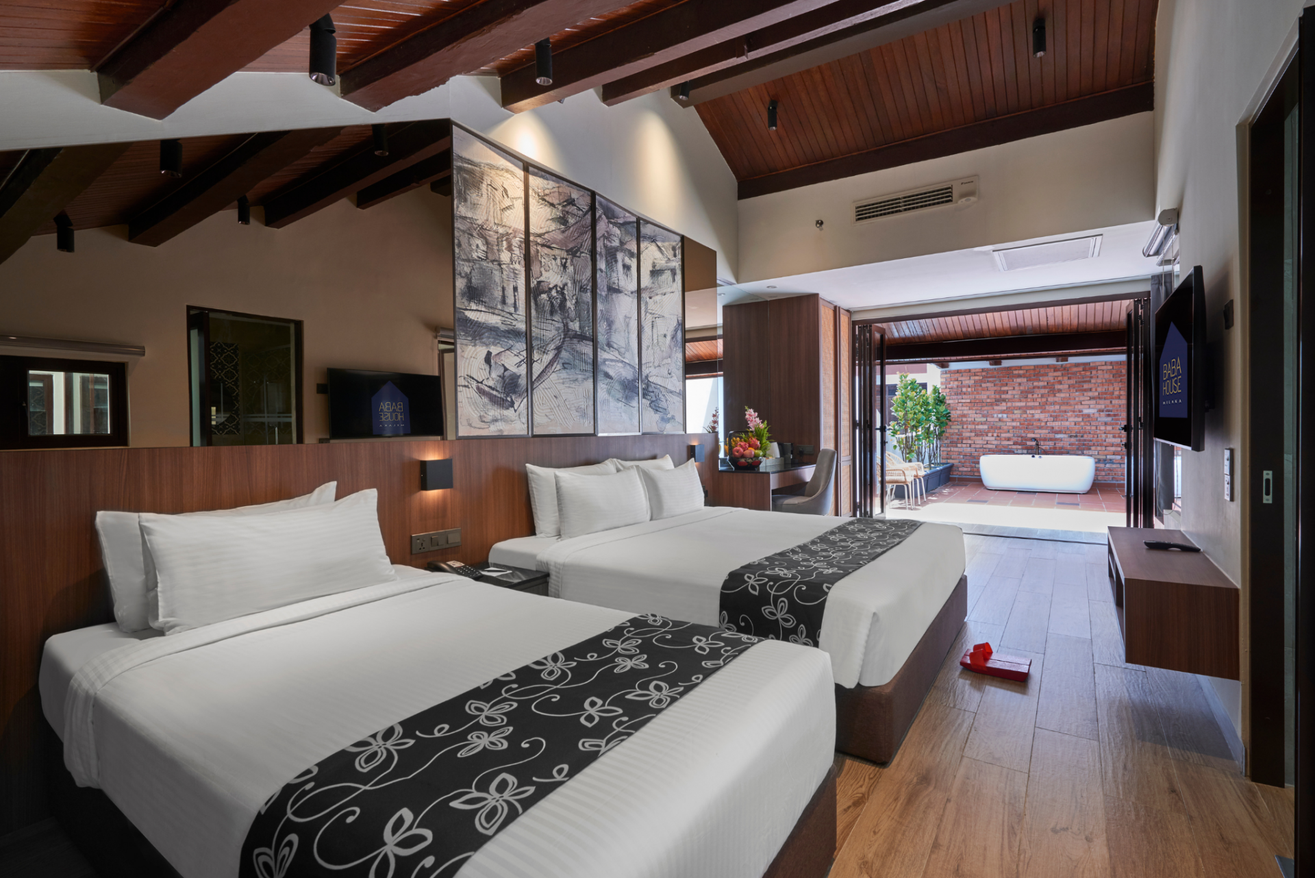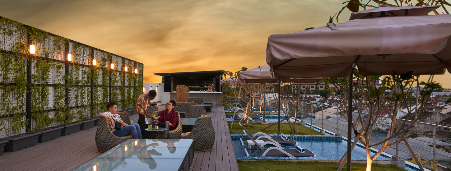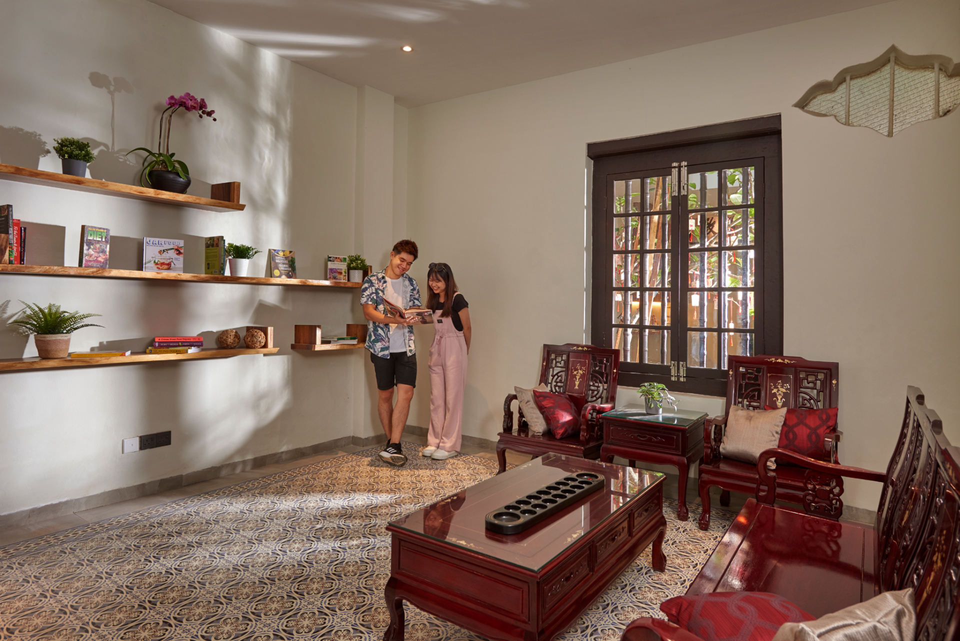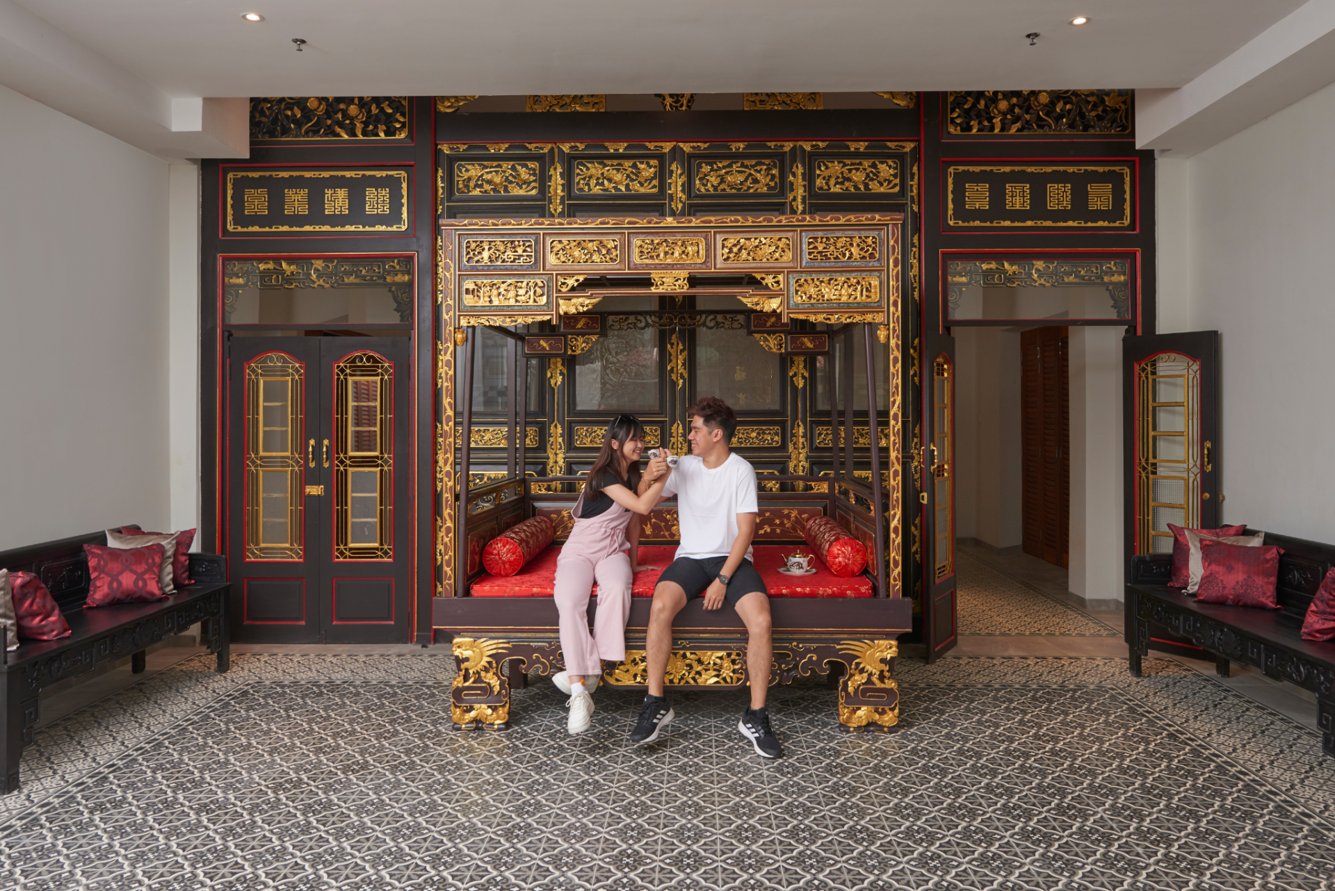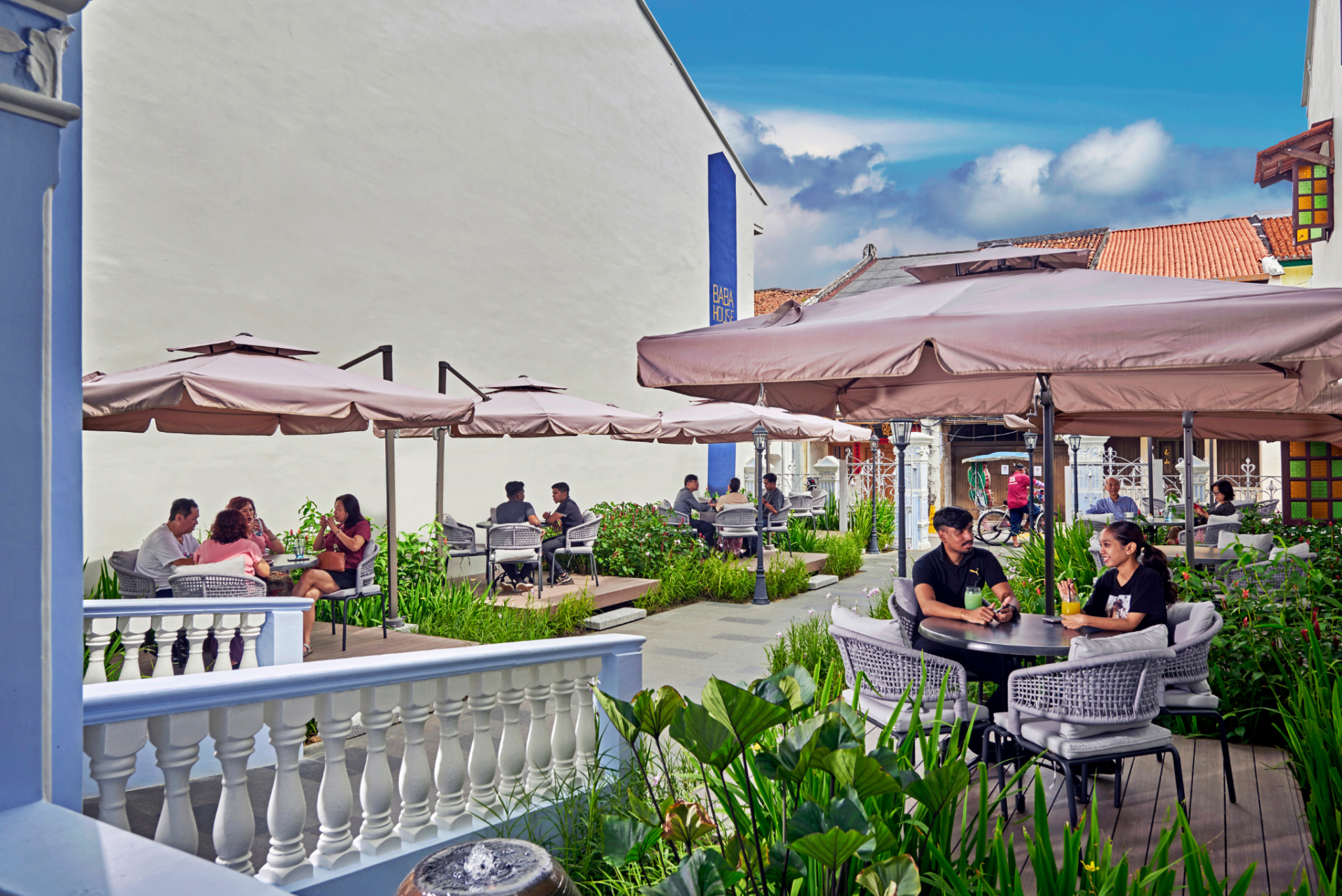 What makes Baba House Melaka distinctive is its immersive design language. The hotel’s chambers pair Peranakan-inspired décor with Oasis-themed styling, creating an atmosphere that is intimate, elegant and unmistakably local. Public spaces continue the story, from Mari Chiak Restaurant, where authentic Nyonya cuisine is served, to Kaki Minom rooftop bar, the Bilek Bacha Library and a courtyard anchored by heritage details such as a century-old opium bed. Rooftop tanning pools, a gymnasium and flexible banquet and function spaces add a modern hospitality layer to the cultural experience.