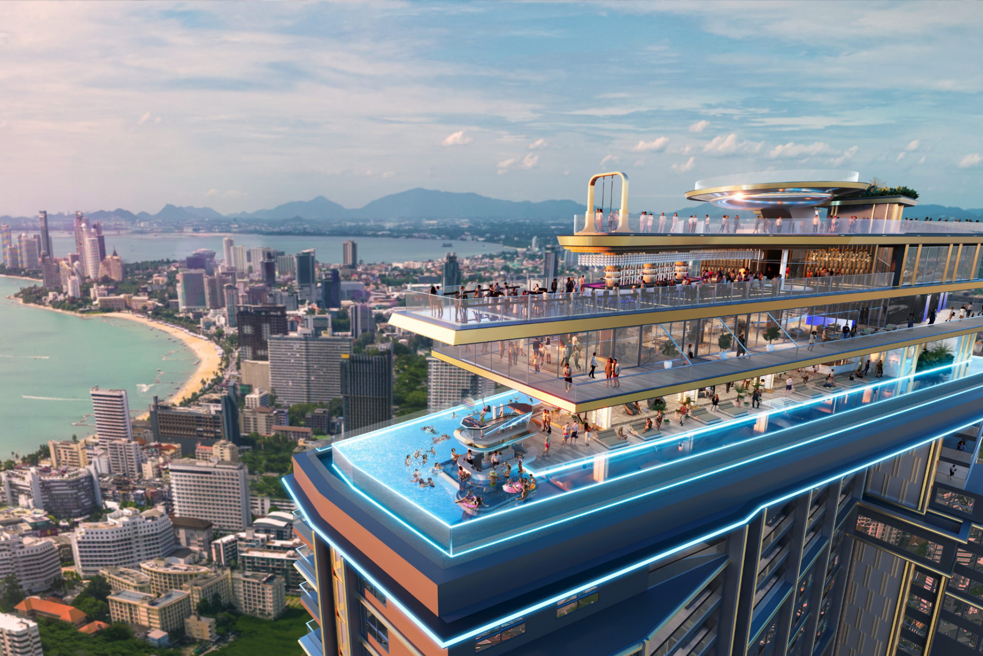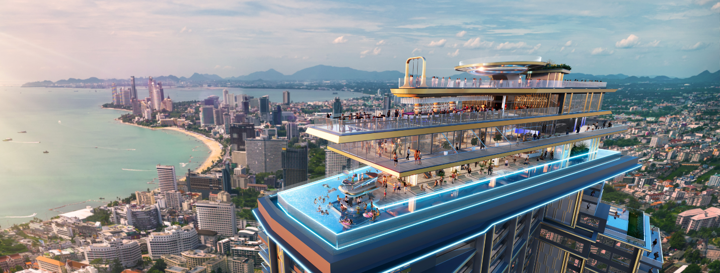 Grand Solaire Noble enjoys a convenient location on Pattaya 3rd Road and is currently under construction with piling now underway; expected to be completed at the end of Q4 2028. The project’s concept centers on vertical resort-style living and a landmark multi-level rooftop leisure and entertainment complex of approximately 4,000 sqm, supported by climate-responsive architecture, smart-ready infrastructure, and efficient layouts designed with rental appeal in mind. S.L.R Development Co., Ltd also outlines sustainability-focused strategies integrated into design and operations, including energy-efficient systems and lighting, water-saving fixtures, optimized natural ventilation, durable material selection, low-water landscaping, and waste management and recycling practices.