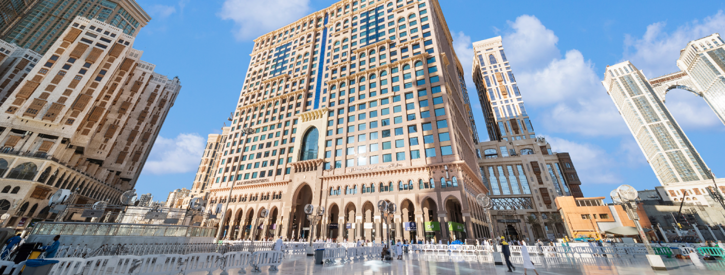 The hotel features elegantly designed guest rooms and suites offering spectacular views of the Holy Mosque or Makkah skyline, combining comfort with sophisticated luxury. Guests benefit from exclusive amenities including private prayer halls, secure parking facilities, and a selection of refined dining experiences, including elegant restaurants and the inviting Zamzam Café.