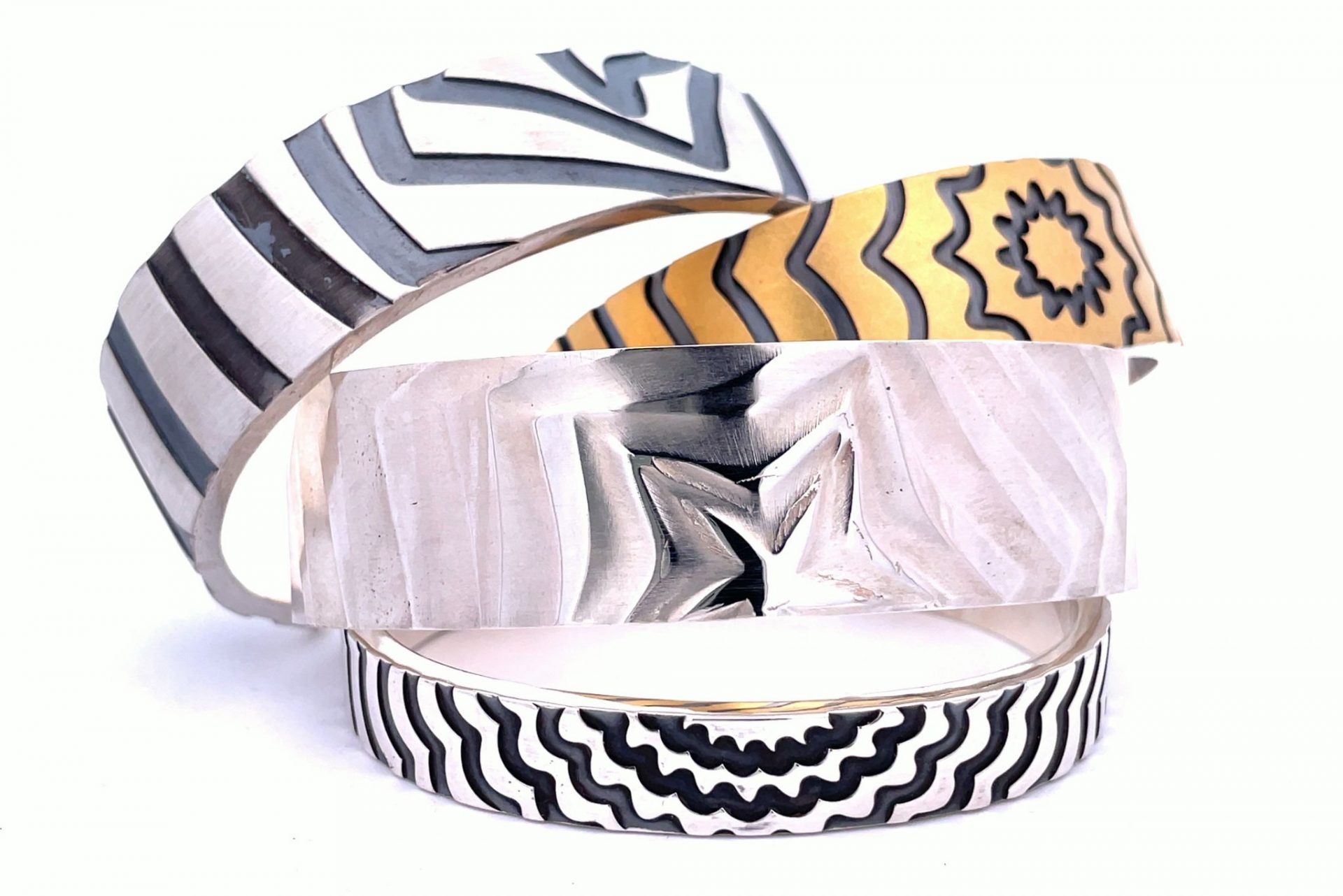 The studio is also a trusted materials partner, supplying premium Damascus steel and custom Mokume Gane to respected jewelry houses including John Hardy, Lashbrook, Carbon 6 Rings, and Stuller.