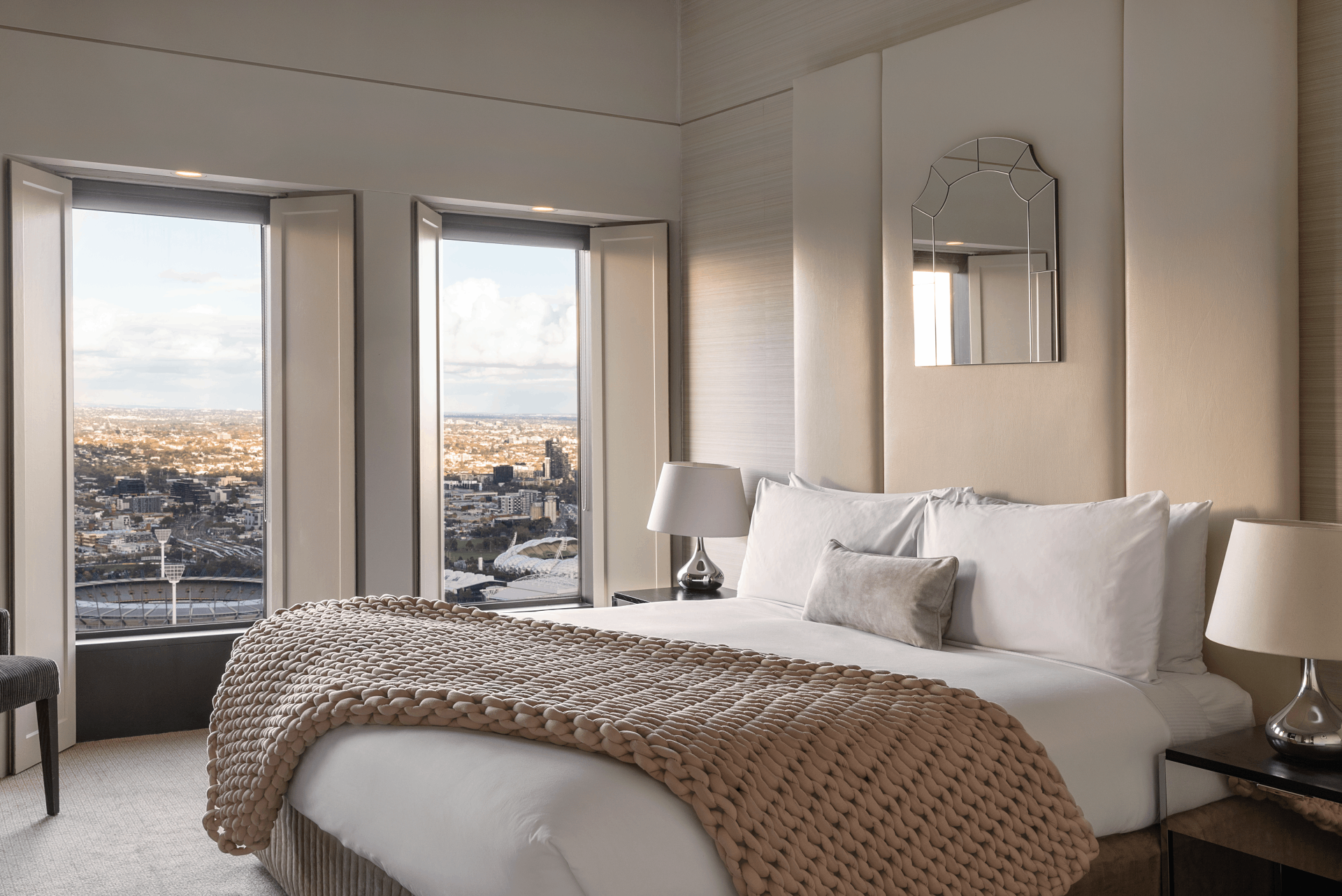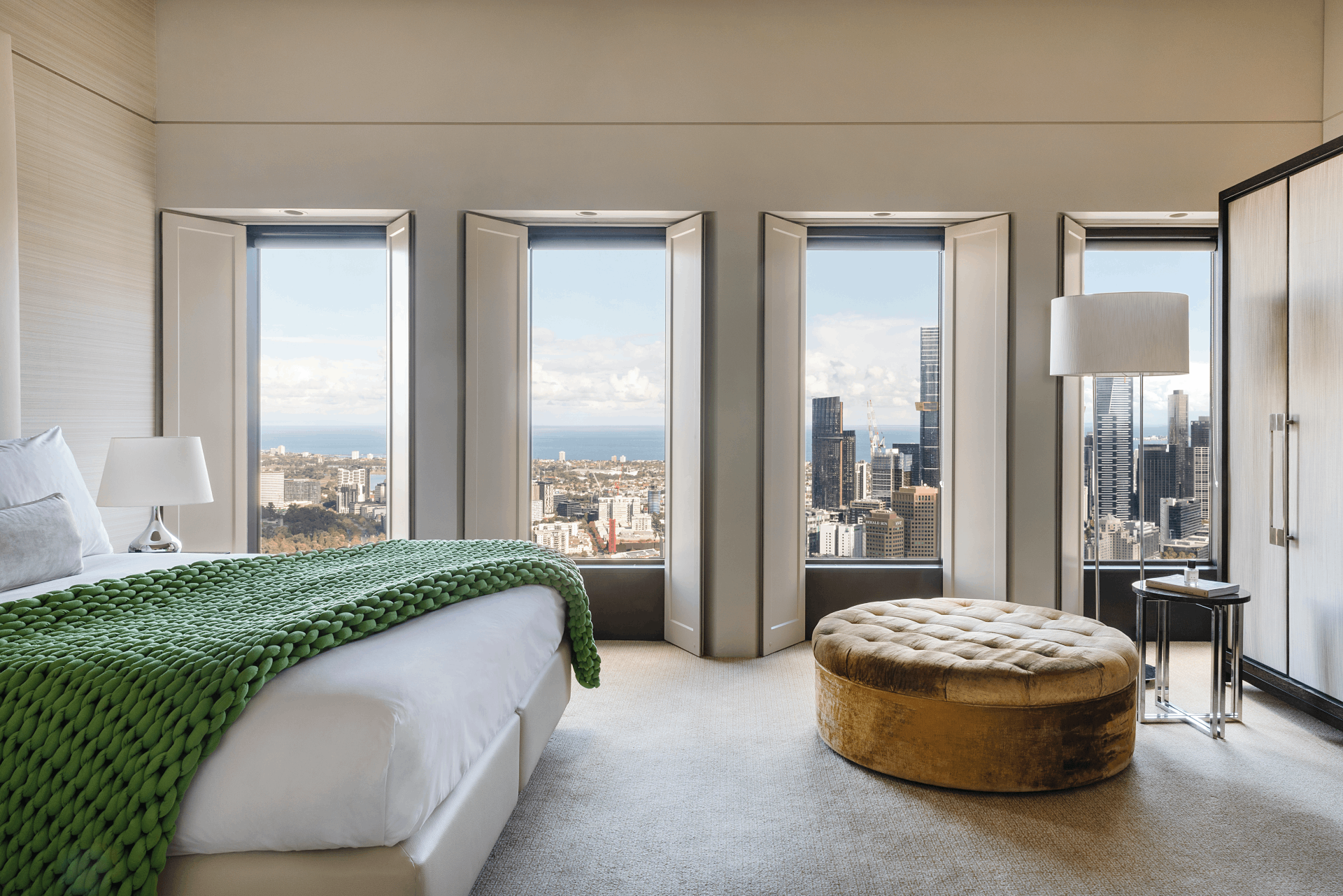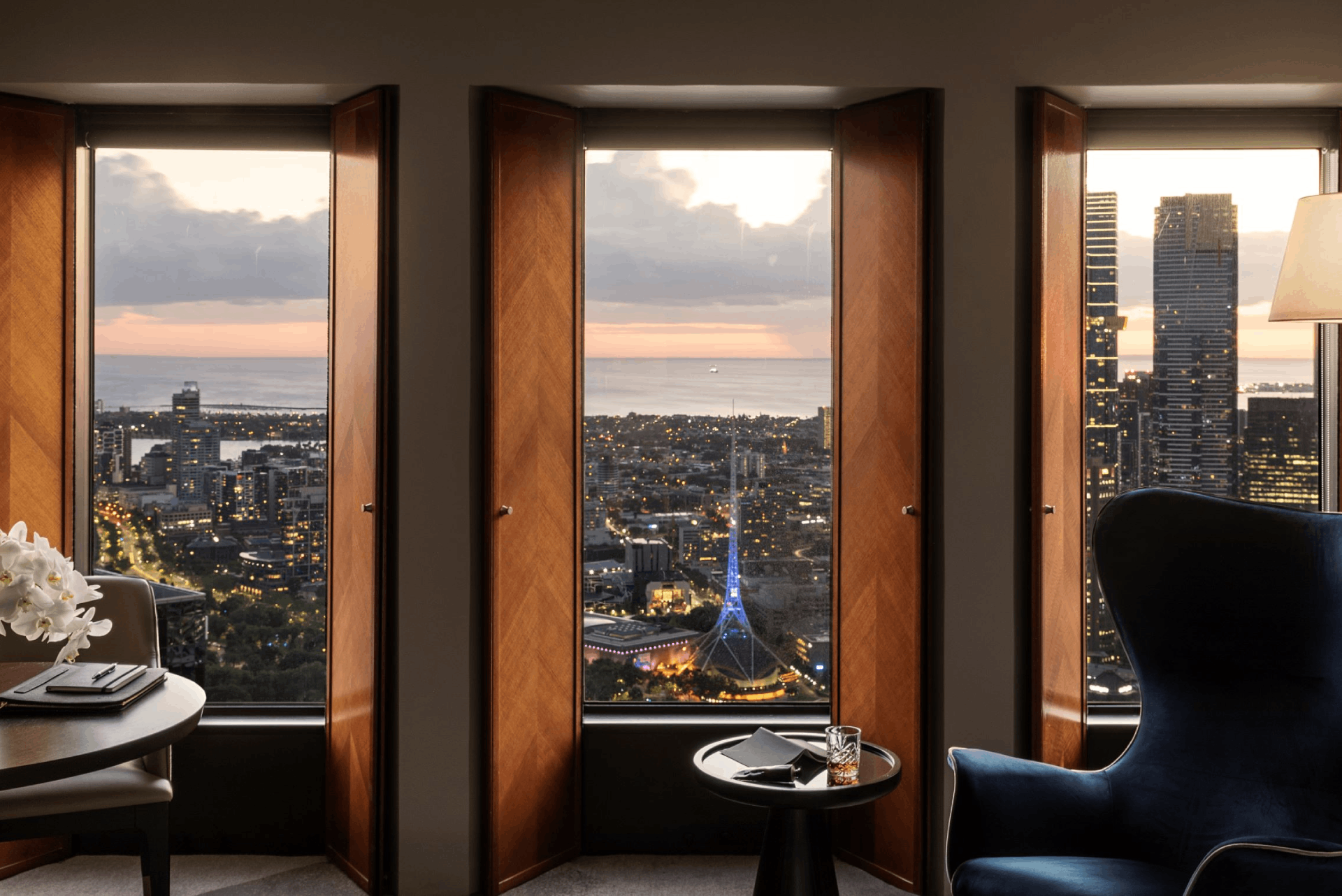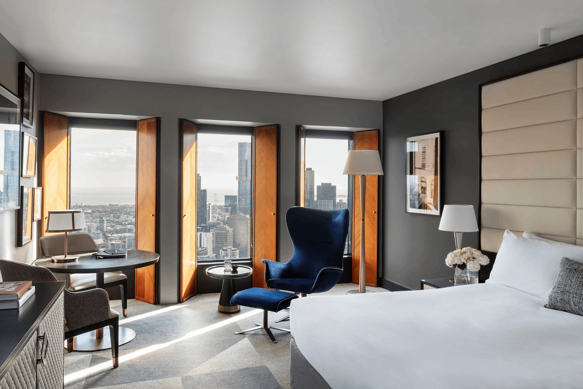 Following a $45 million refurbishment completed in 2021, the property showcases refined interiors, enhanced guest experiences, and innovative design. Culinary excellence is a cornerstone of the hotel, with No35 Restaurant offering sophisticated French-inspired dining alongside panoramic views of the Yarra River and Southbank. The Atrium on 35 provides an elegant bar experience, while weekend high tea elevates indulgence above the city skyline.