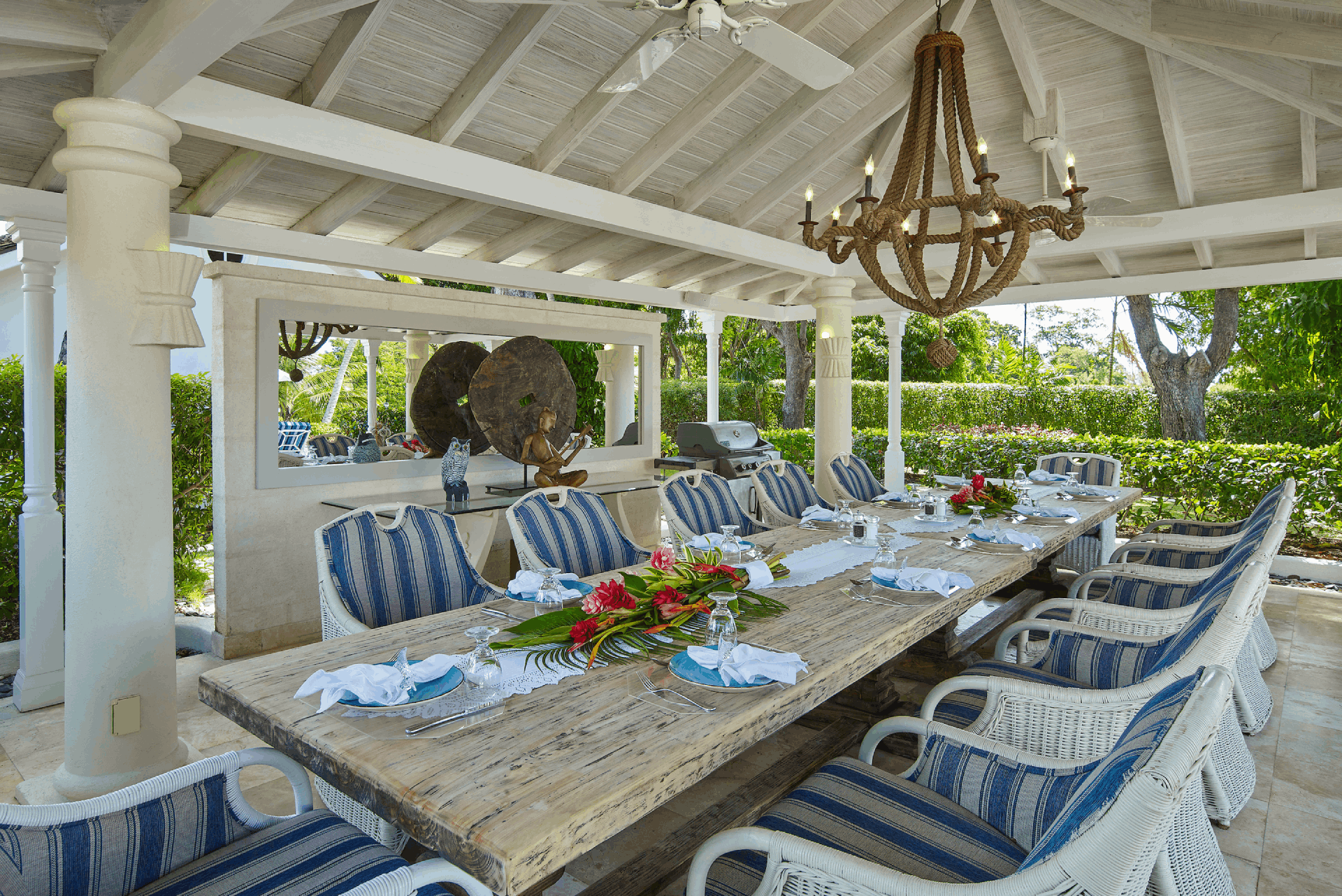 This Barbados luxury villa is defined by its seamless indoor-outdoor living. Guests can unwind on covered terraces, enjoy alfresco dining in a charming gazebo, or relax in the outdoor lounge with a private bar. The 20-metre infinity pool is a standout feature, surrounded by lush tropical gardens that create a tranquil and immersive island atmosphere.