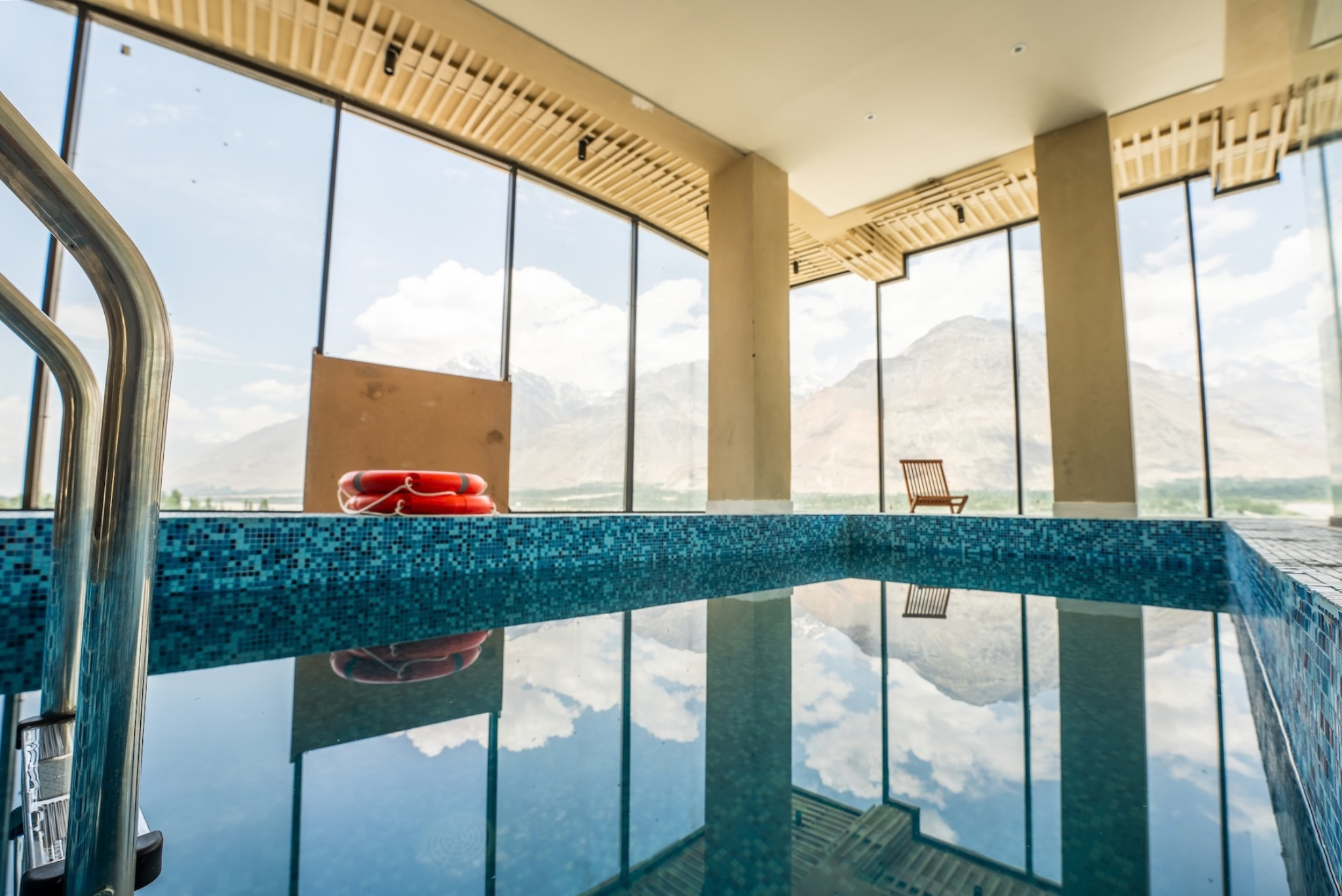 The resort’s amenities are designed to be as extraordinary as the landscape surrounding them. A signature amphitheater serves as a cultural gathering venue, while Samarkand and Concordia, two state-of-the-art banquet halls, offer corporate teams an exceptional setting for offsites and retreats. A temperature-controlled infinity pool overlooks Shigar Valley, and an elevated outdoor padel court, one of the world’s highest-altitude courts, draws athletes to compete within the most dramatic mountain landscapes on earth.