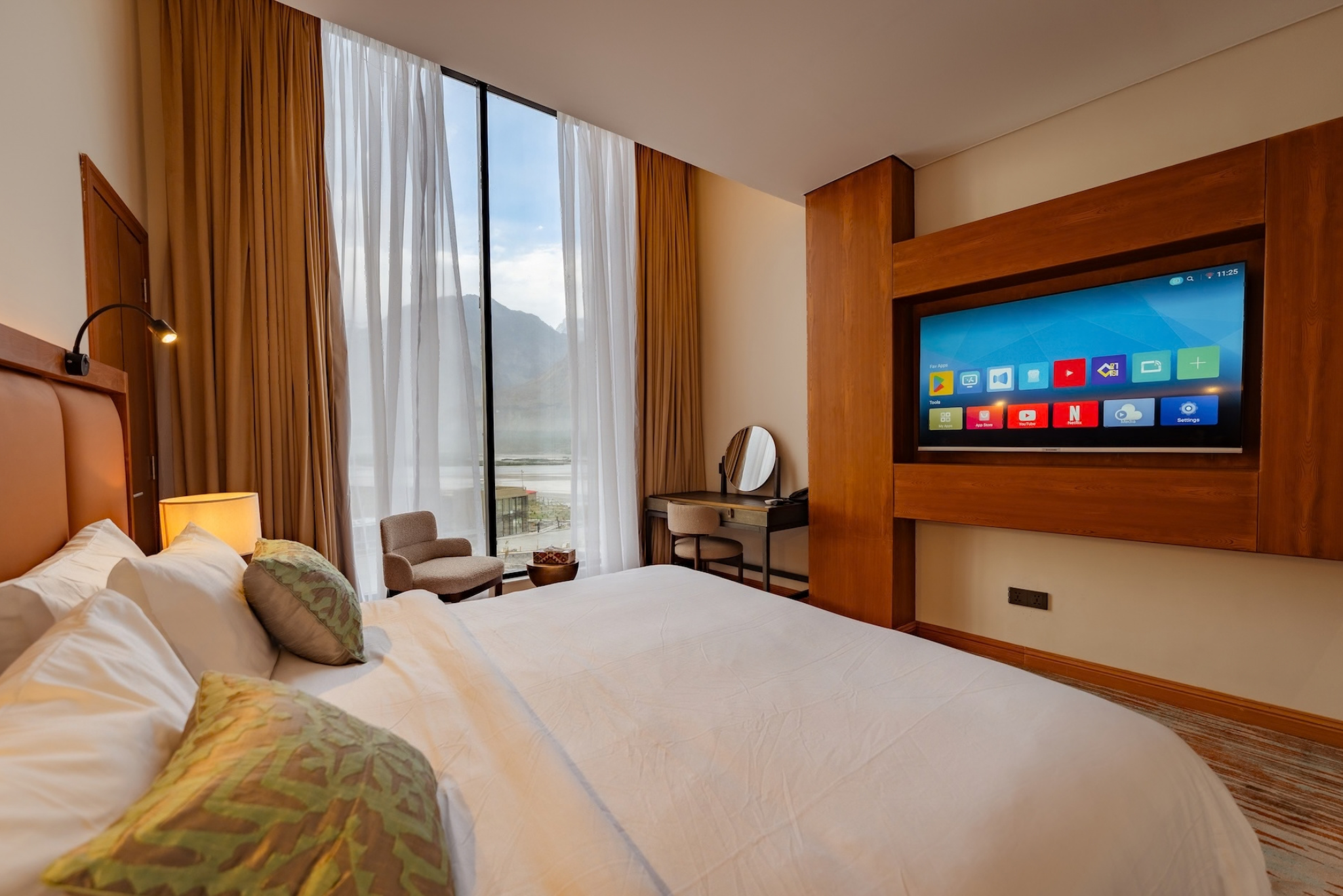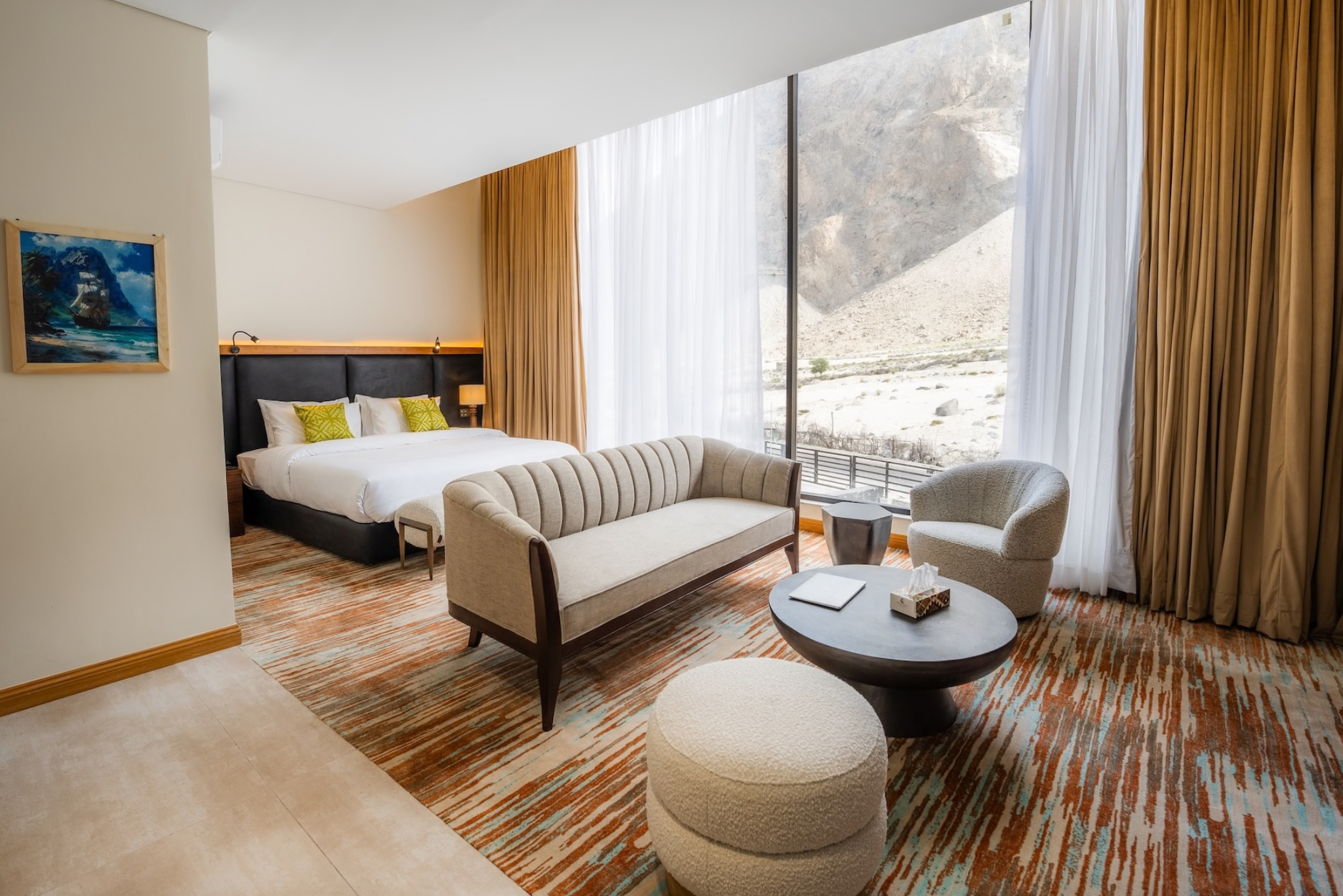 With over 60 uniquely designed accommodations ranging from intimate suites to expansive villa residences, each positioned to frame panoramic Karakoram views while delivering contemporary comfort. Every piece of furniture is handcrafted by local artisans drawing direct inspiration from the historic Silk Route, transforming each room into a cultural statement that honors Pakistan’s legacy as a crossroads of civilizations. This is luxury mountain hospitality rooted in authenticity.