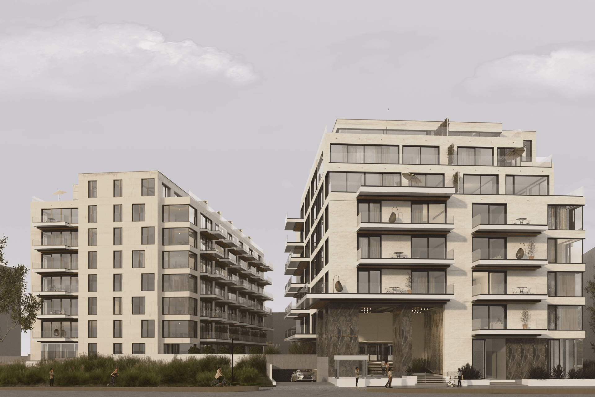 Nordului Park Residence 56, another flagship development in northern Bucharest, reinforces the firm’s luxury-meets-sustainability paradigm. Each apartment spans at least 100 sqm and connects directly with adjacent parkland. The complex incorporates photovoltaic panels, heat pumps, in-floor heating, green roof terraces, and low-carbon materials like natural stone and sustainably sourced wood.