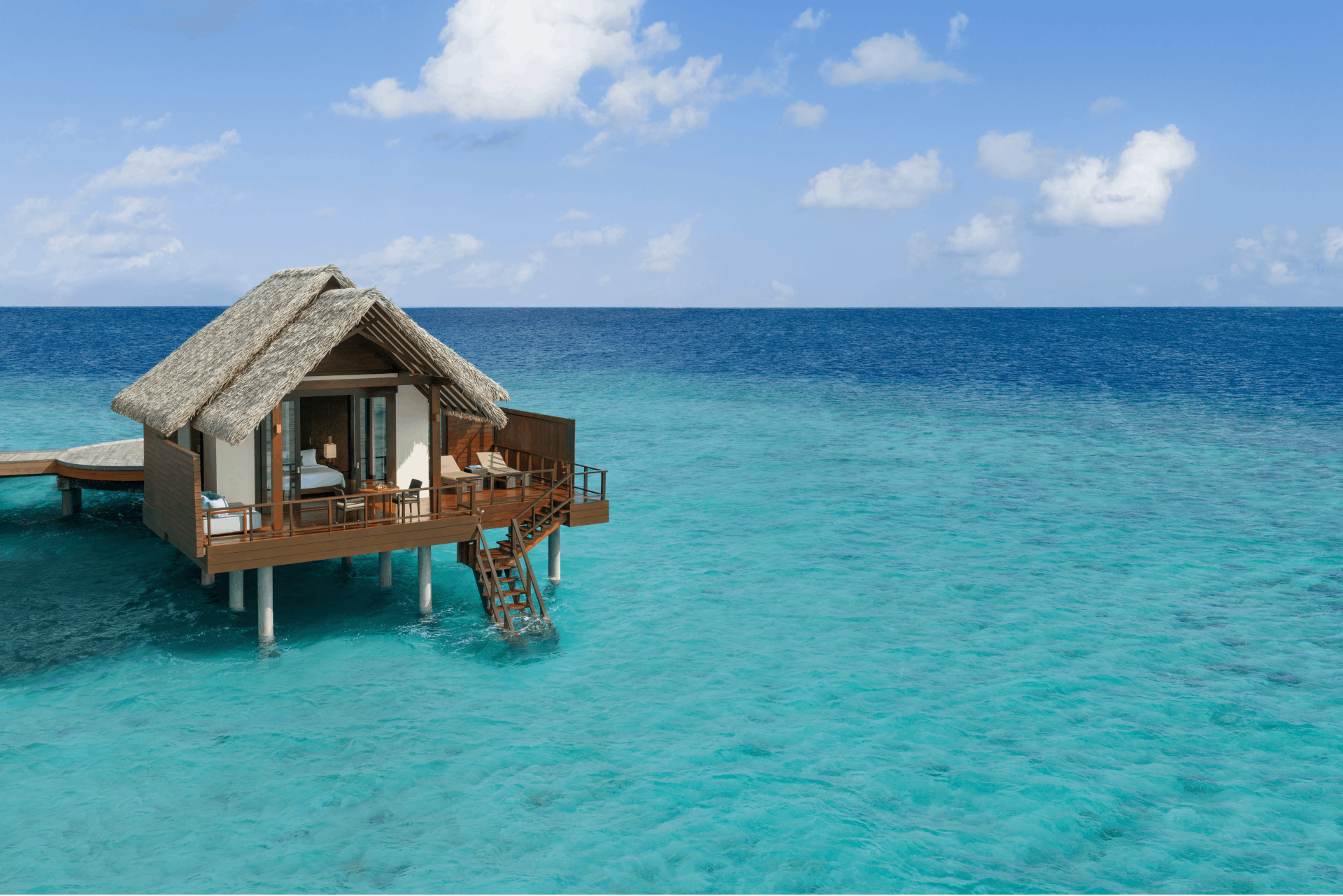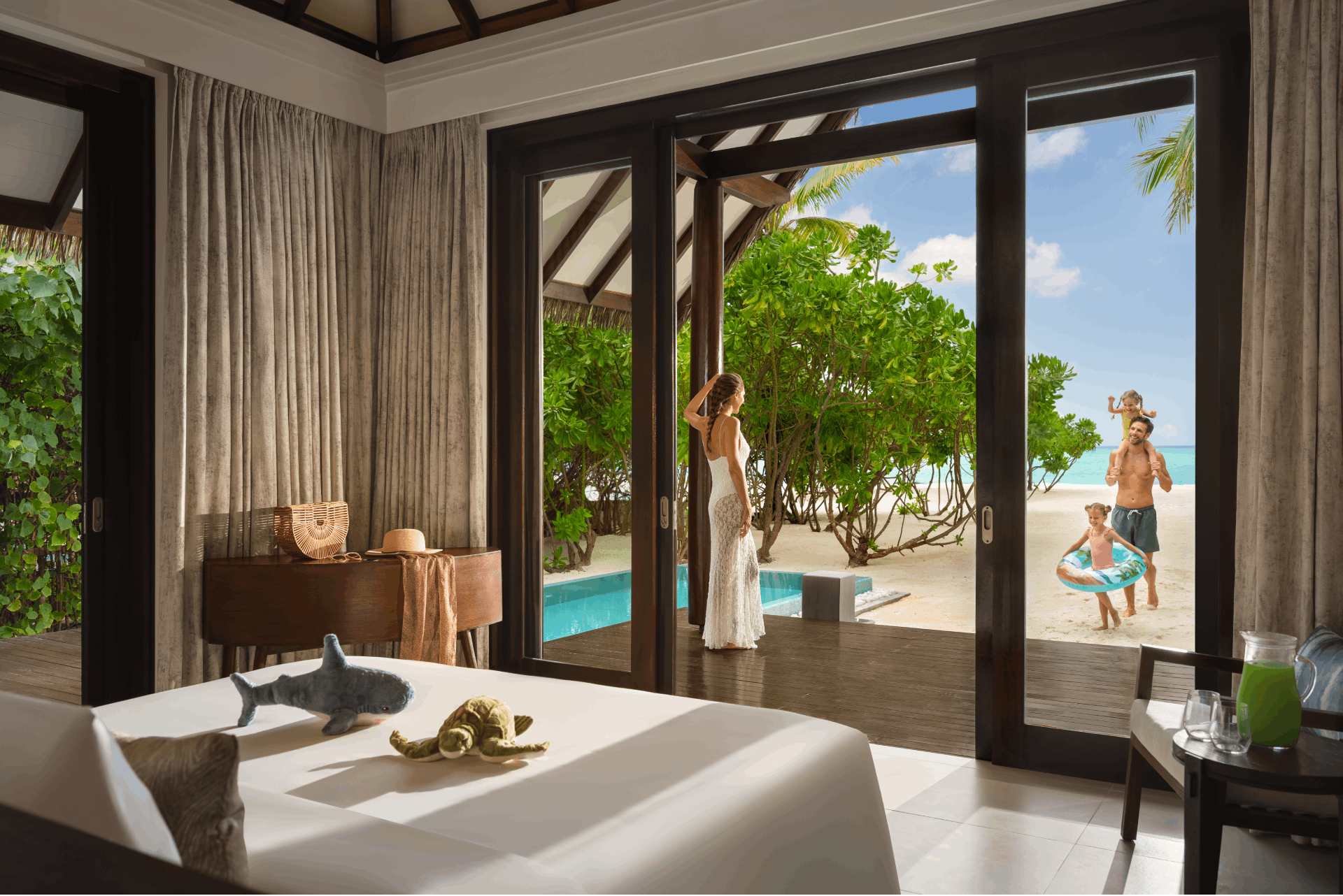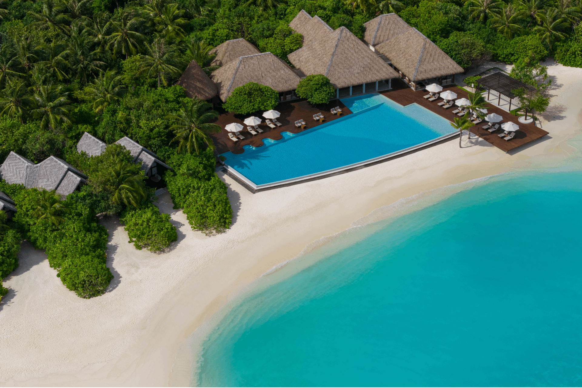 The resort features 124 villas and 26 suites, each designed for ultimate comfort and tranquility. Butler-serviced accommodations blend modern amenities with Maldivian charm, and villas are equipped with snorkeling gear, inviting guests to explore vibrant marine life directly from their doorstep.