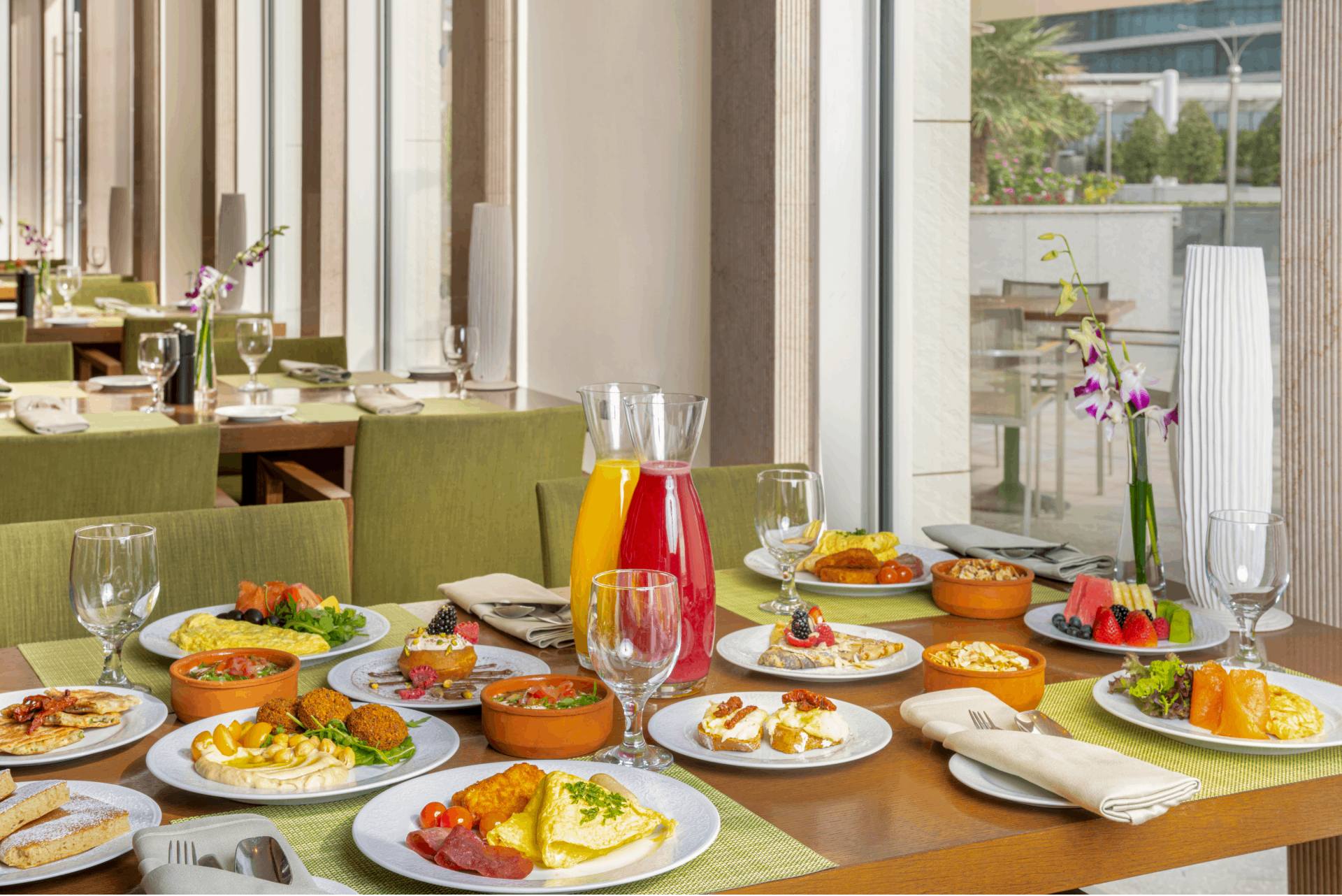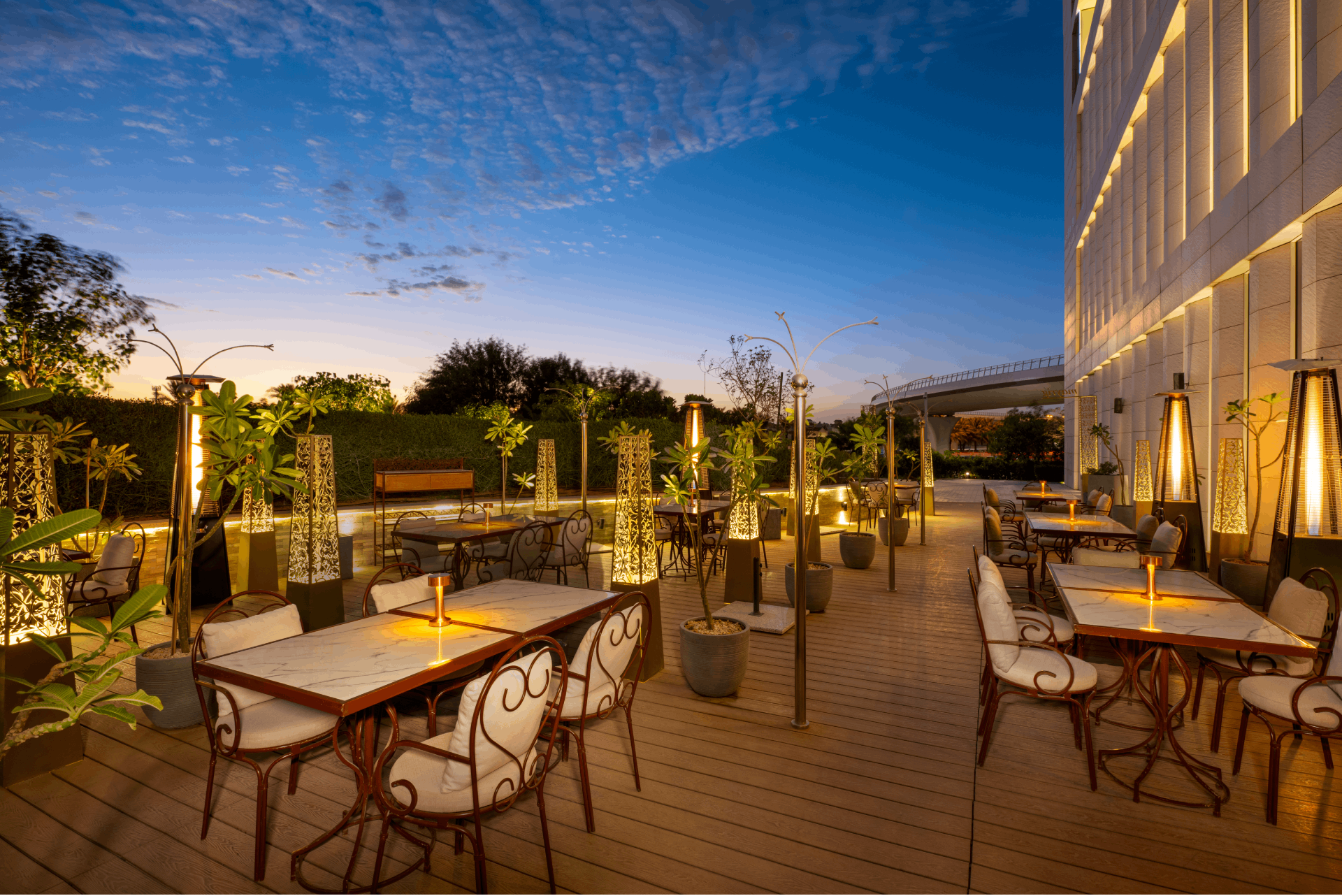 Hilton Riyadh Hotel & Residences is also a culinary destination, offering a variety of restaurants that cater to global tastes. Mayrig serves authentic Armenian cuisine in a warm, inviting atmosphere, while Lotus delights diners with Asian flavors. Ambar provides a relaxed setting ideal for light bites and conversation, and Anar Terrace offers a welcoming outdoor space to enjoy a range of international dishes.