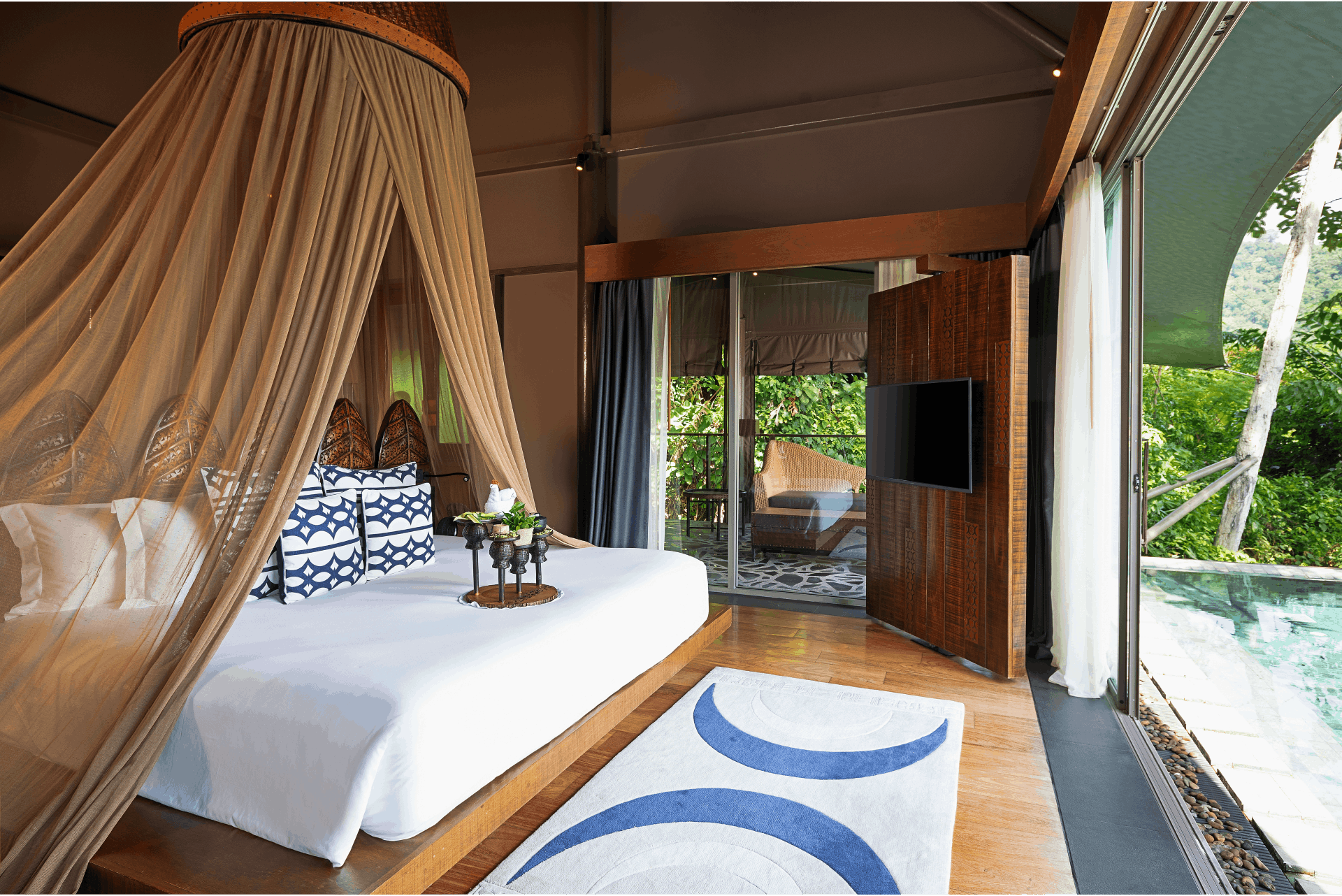 The resort’s concept is inspired by four ancient clans believed to have settled in Phuket, each represented through distinct villa designs. From the earth-toned Clay Pool Cottages and nomadic Tent Pool Villas to the elevated Tree Pool Houses and iconic Bird’s Nest Pool Villas, every accommodation tells a story. These private pool villas are thoughtfully positioned to preserve the surrounding landscape, providing guests with seclusion, generous living spaces, and uninterrupted views of jungle canopies or distant sea horizons.