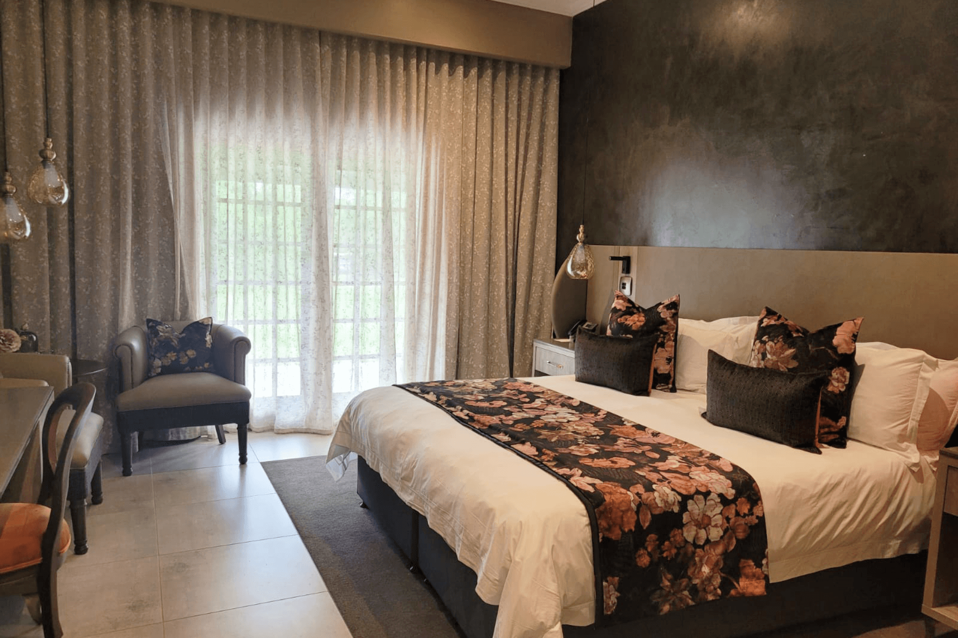 Affectionately known as “the Winelands in Gauteng,” Kievits Kroon captivates guests with its Cape Dutch-style architecture, sweeping lawns, vibrant rose beds, and tranquil ambience. The estate features 142 stylishly furnished rooms and suites, thoughtfully positioned around the property to ensure privacy and comfort. Each room is equipped with modern amenities, secure parking is available nearby, and a porter service ensures a seamless arrival and departure experience.