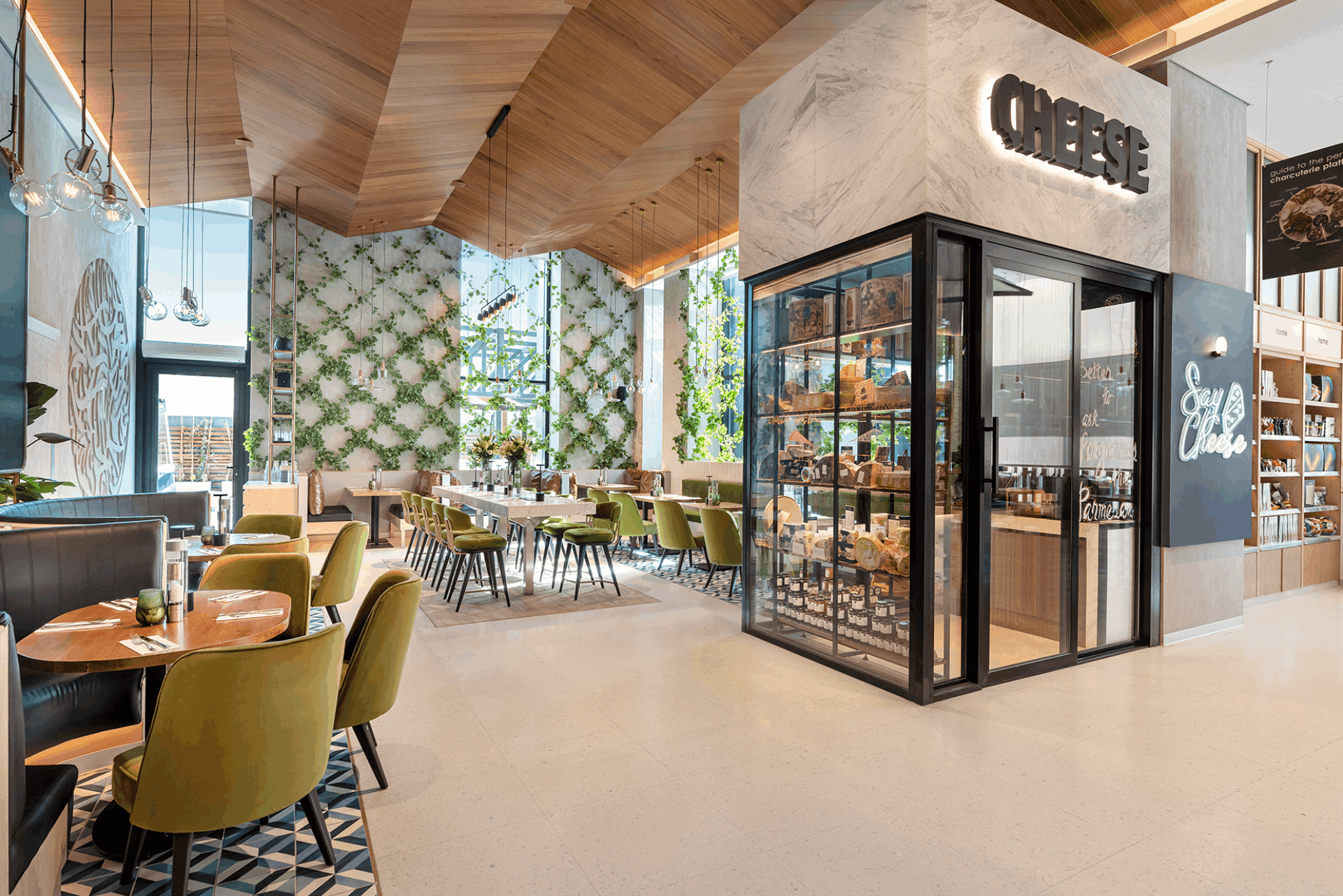The menu reflects the brand’s modern Australian roots, crafted with seasonal ingredients and local inspiration. Breakfast might feature truffle scrambled eggs or a perfect flat white, while lunch and dinner highlight signature dishes such as burrata flatbread or the indulgent Ultimate Mr. Jones wagyu burger. With inclusive offerings, from gluten-free desserts to hearty mains, Jones the Grocer invites everyone to enjoy its all-day dining ethos.